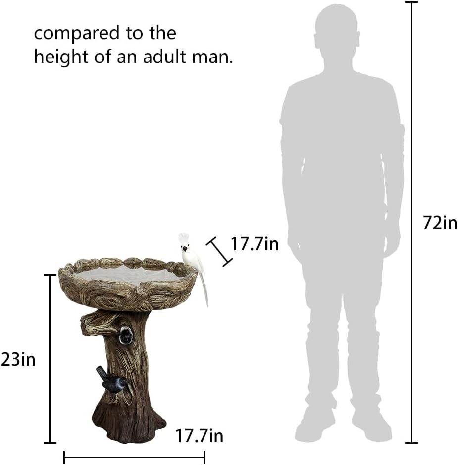 23" H Birdbath for Garden with a Fake Bird Decor - 23" H * 17.7" Φ Freestanding Trunk Like Bird Bath for Outside Patio or Yard Decor