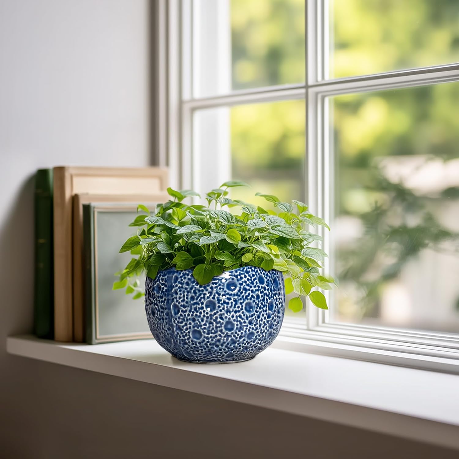 - Suitable for a variety of plants: This blue pots for plants is an ideal choice for growing orchids, snake plant, succulent plants, peace lily, pothos, money tree, zz plant, cacti, aloe vera, mint, rosemary, african violet, rainlily, parsley, chrysanthemum, herbs, and other indoor & outdoor plants
