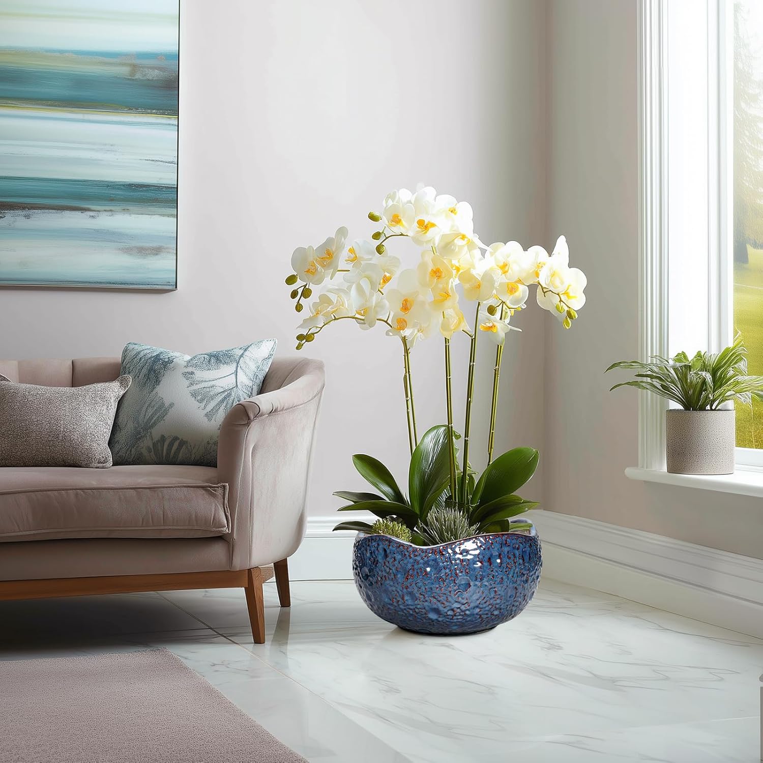 Bonsai Pots - 13 Inch Large Ceramic Planter for Indoor Outdoor, Round Decorative Plant Pots with Drainage Hole, Modern Unique Flower Pots, Patio Decor, Housewarming Gifts, Retro Blue