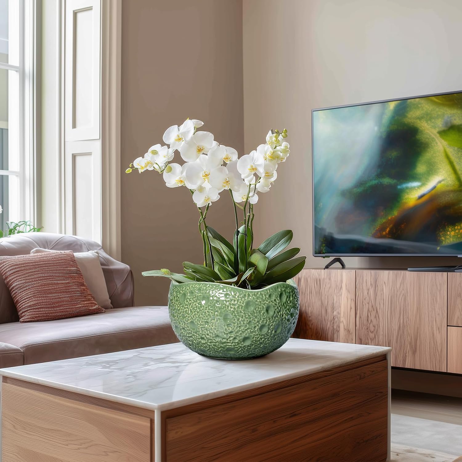 Ceramic Pots for Plants - 10 Inch Plant Pot for Indoor Outdoor, Round Bonsai Pots with Drainage Hole, Modern Planter, Decorative Flower Pot, Living Room Decor, Gifts for Plant Lovers, Green