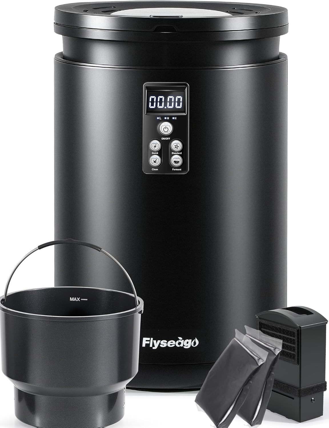 - Powerful & Efficient Composting: Featuring a 700W high-power motor, this kitchen electric composter offers 3 modes—Quick (2.5-4 hours), Standard (4-6 hours), Fermentation (16-24 hours)—to reduce food waste volume by 90% in 3-6 hours through multi-stage grinding, high-temperature drying, and automatic cooling; its anti-tangle design effectively crushes bones, meat, vegetables, fruit, coffee grounds, bread crumbs, and more, transforming food waste and scraps into nutrient-rich natural fertilizer