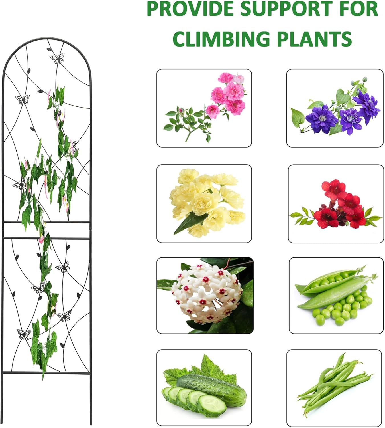 2 Pack Metal Garden Trellis for Climbing Plants, 86.7" Tall Rustproof Outdoor Trellis Panel with Butterfly Design, Decorative Black Iron Plant Support for Vine, Rose, Flower, Garden Wall