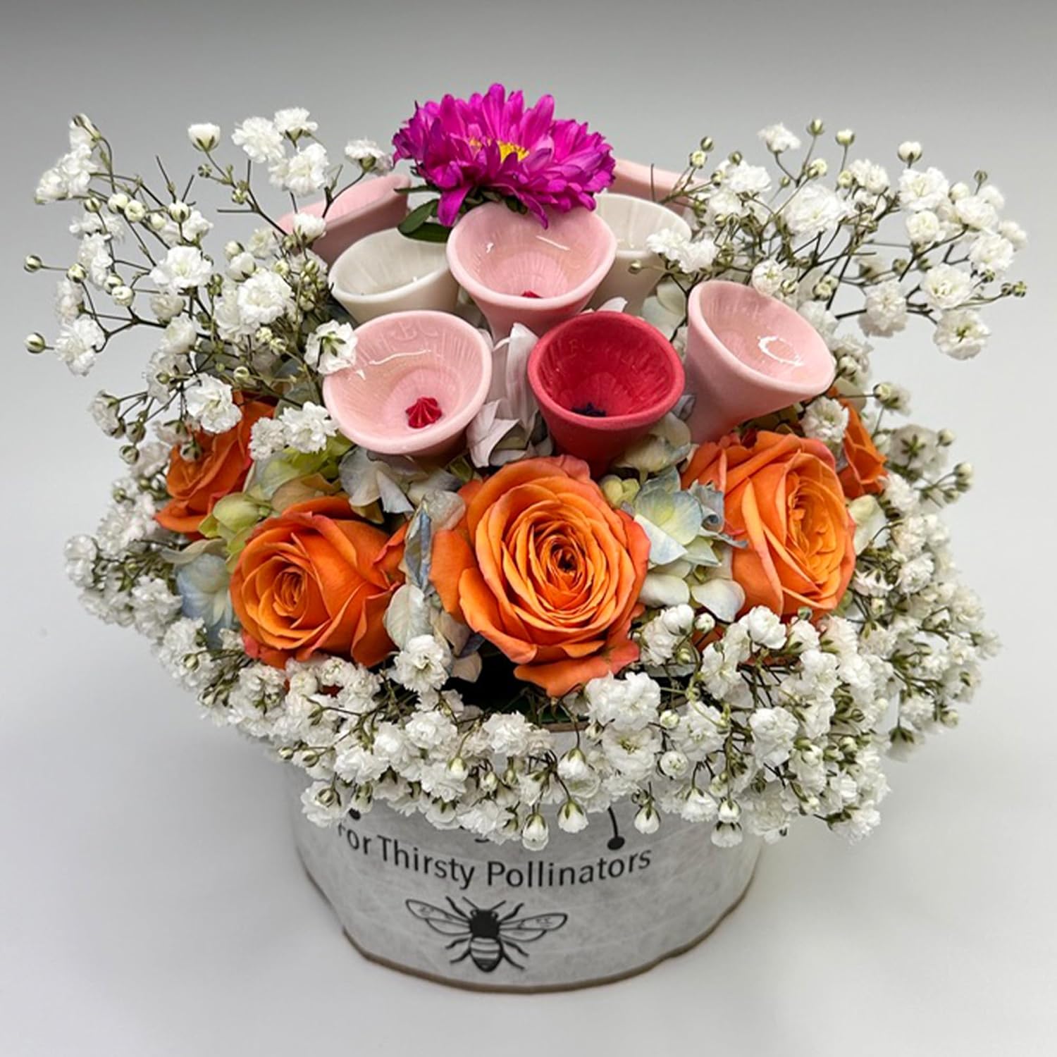 - UV-Reactive Glaze Attracts Pollinators: Bees and many other pollinators are naturally drawn to ultraviolet light. Every Bee Cup's center is hand-painted with our patented Ultraviolet Bee Vision Glaze, designed to mimic the UV glow and patterns of flowers, making them highly visible to pollinators, attracting more into your garden.