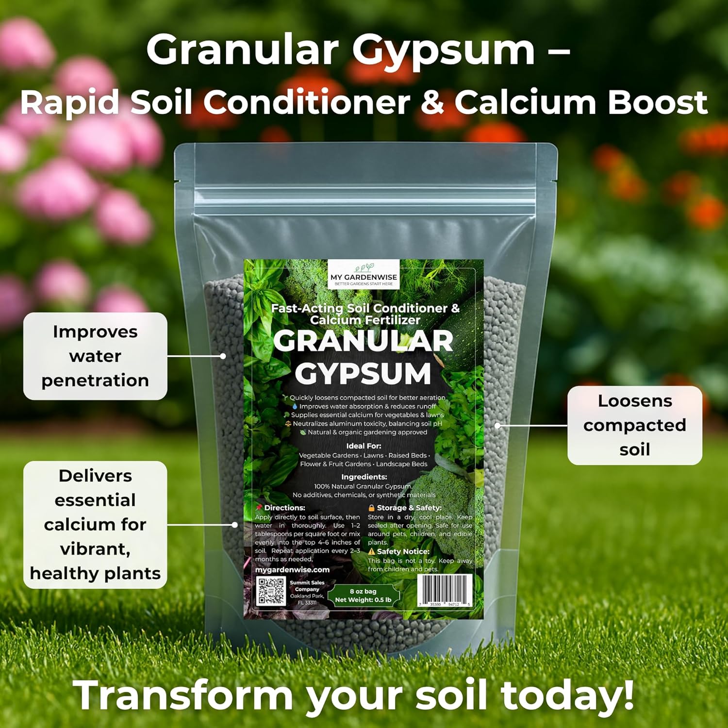 - πΏ Rapid Soil Improvement: Our fast-acting granular gypsum quickly loosens compacted soils, enhances aeration, and promotes healthier plant root systems. Ideal granular gypsum for gardening enthusiasts and professional landscapers alike.