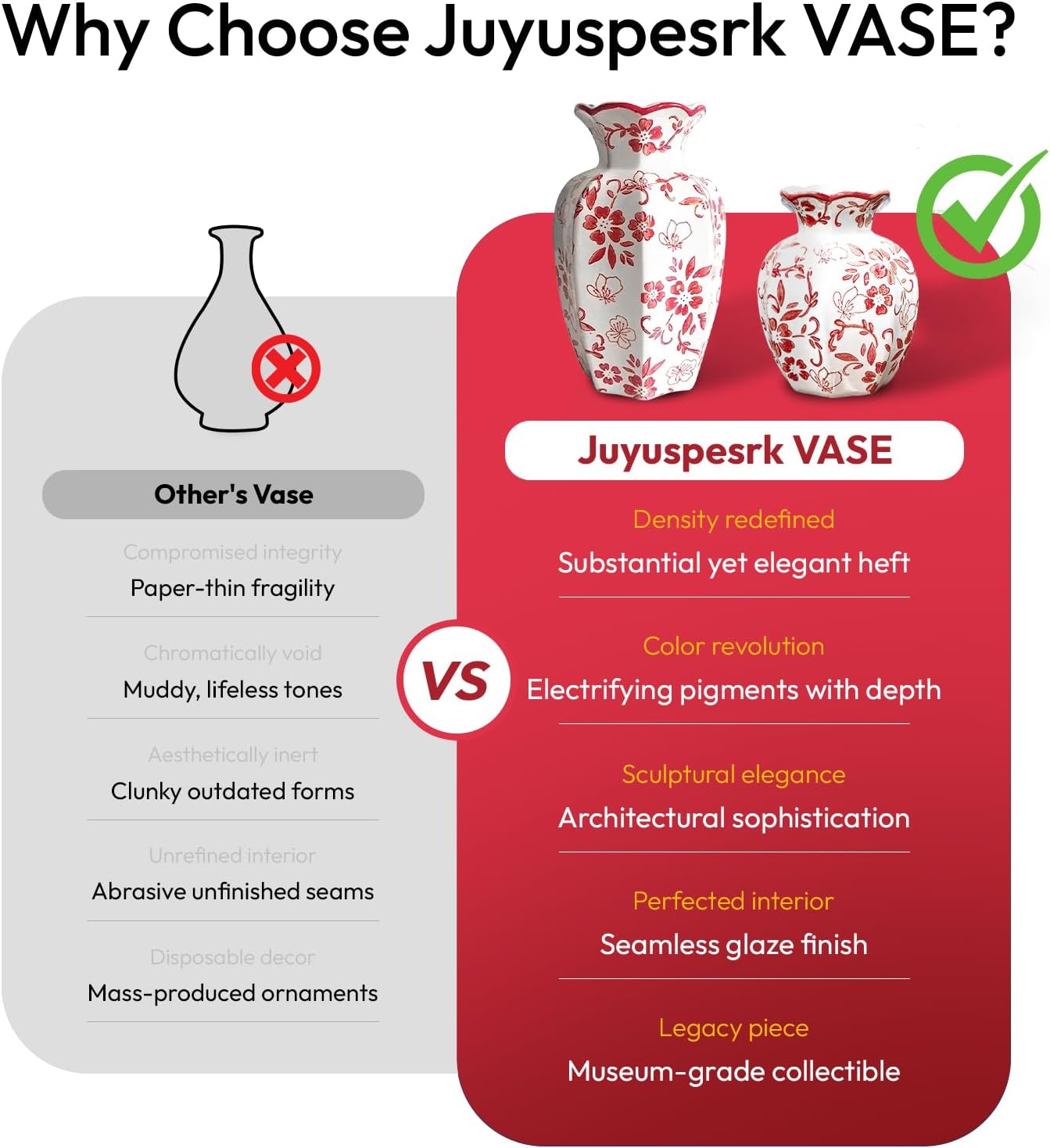 Chinoiserie Vase,Red and White Vase,Vintage Ceramic Vases,Flower Vase for Centerpiece,Chinese Cute Vases for Living Room, Office,Home Decor (Red White, Small)