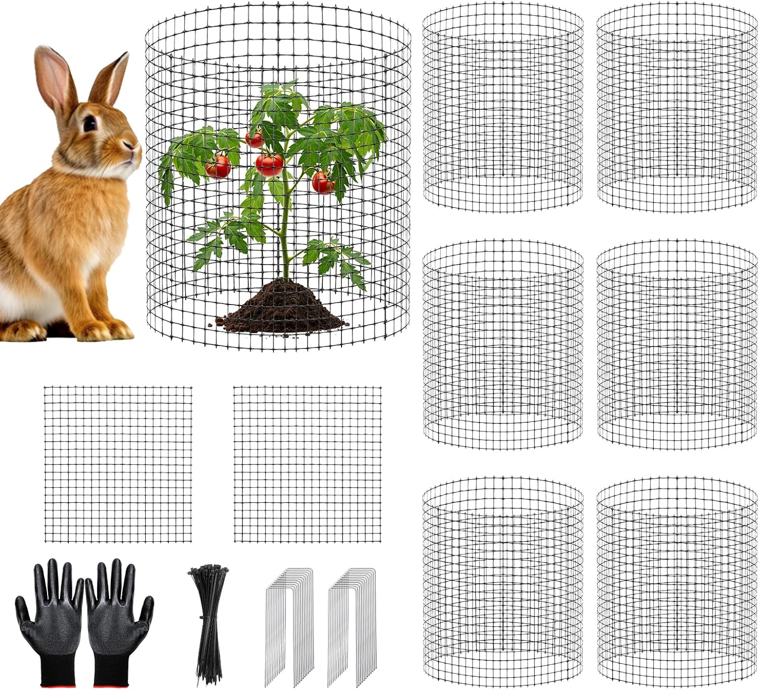 - PACKAGE INCLUDE: You will receive 9Pcs 12x12 inch square metal plant protection mesh, 9 fixing ground stakes, 30 black cable tie, a pair of gloves and 1 instruction manual, this complete kit allows you to customize one or more plant cages for your outdoor plants.Our metal garden protection cage will effectively protect your plants from small animals and provide a safe space for your plants to grow.