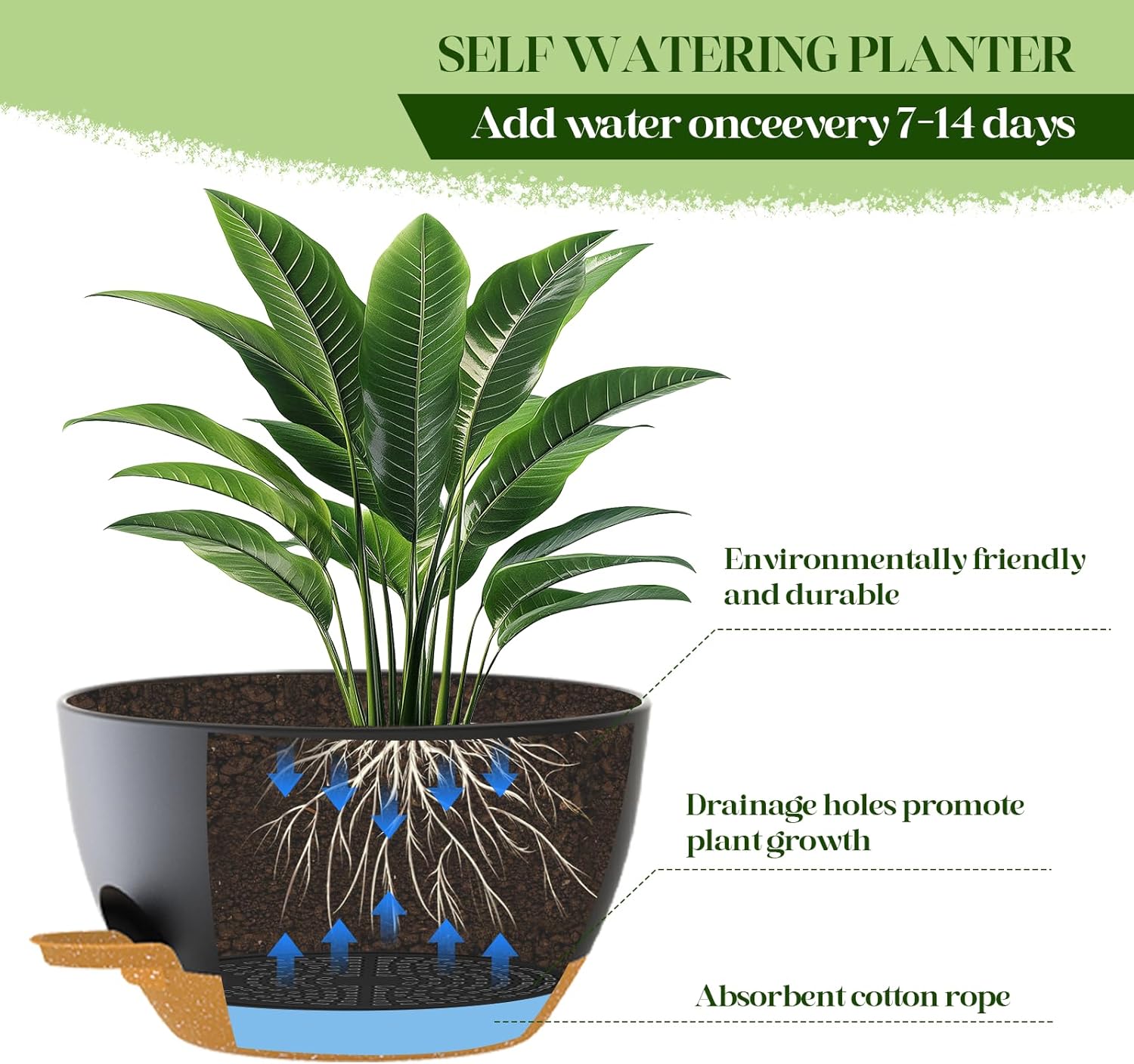 - β 2 Large Self-Watering Planters: Double the value! Includes two 10-inch wide plastic hanging planters with built-in self-watering reservoirs to reduce the need for frequent watering and keep plants healthier.