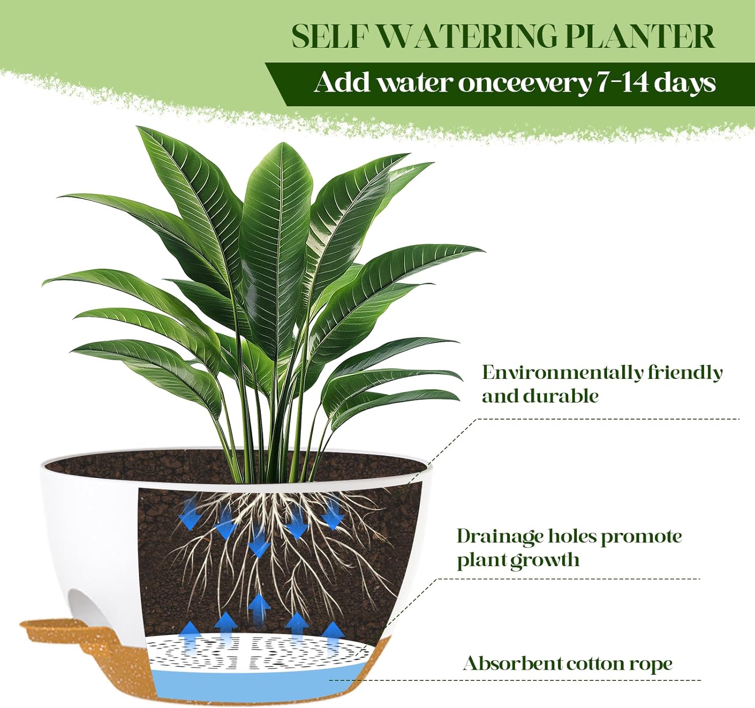- β 2 Large Self-Watering Planters: Double the value! Includes two 10-inch wide plastic hanging planters with built-in self-watering reservoirs to reduce the need for frequent watering and keep plants healthier.