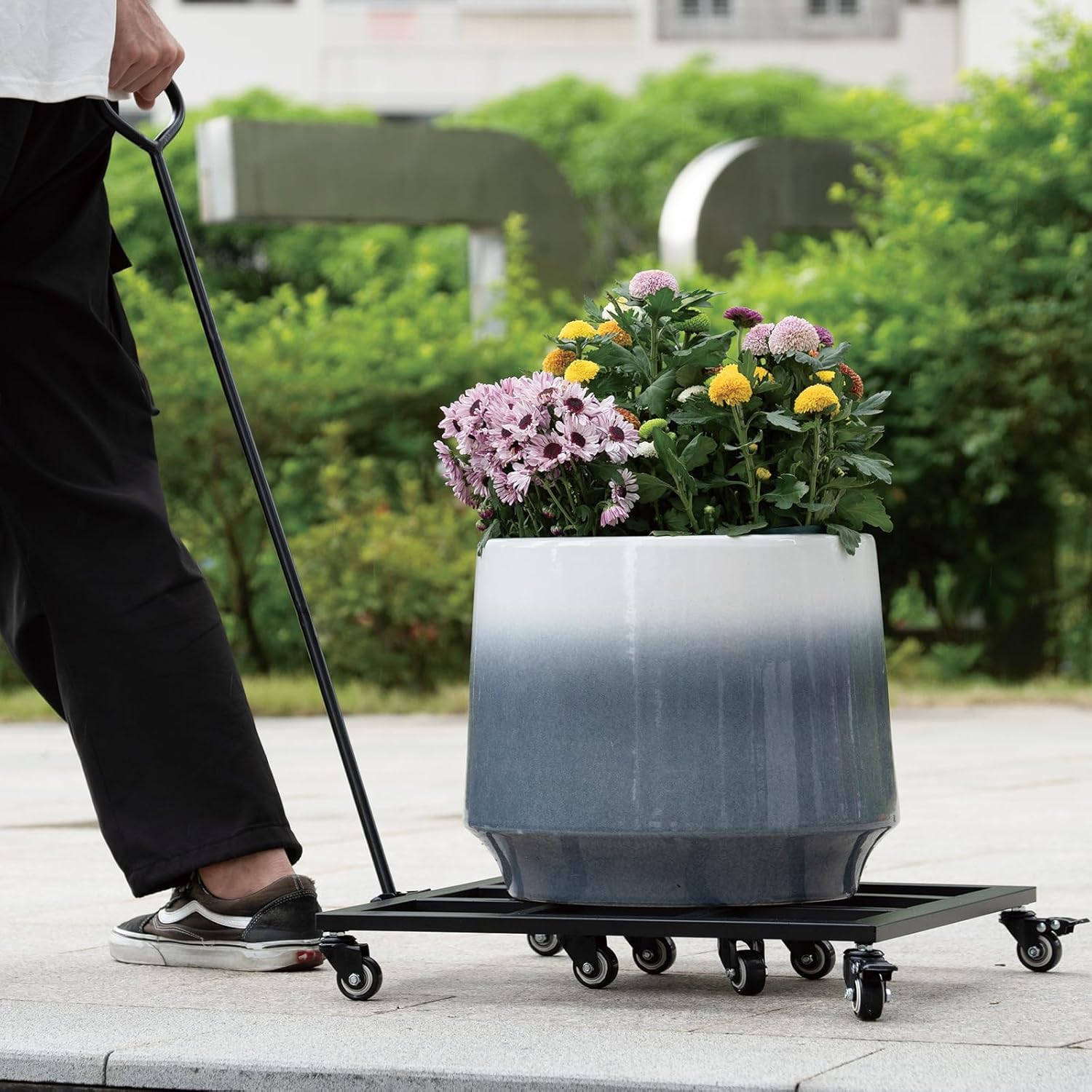 - 💪Exceptional Durability: Built to last, our plant dolly is crafted from high-quality steel, outperforming plastic, wood, and wire alternatives in both strength and resilience. With the capability to hold up to 200 lbs and equipped with eight robust wheels, it ensures smooth transportation indoors and outdoors without a hitch.