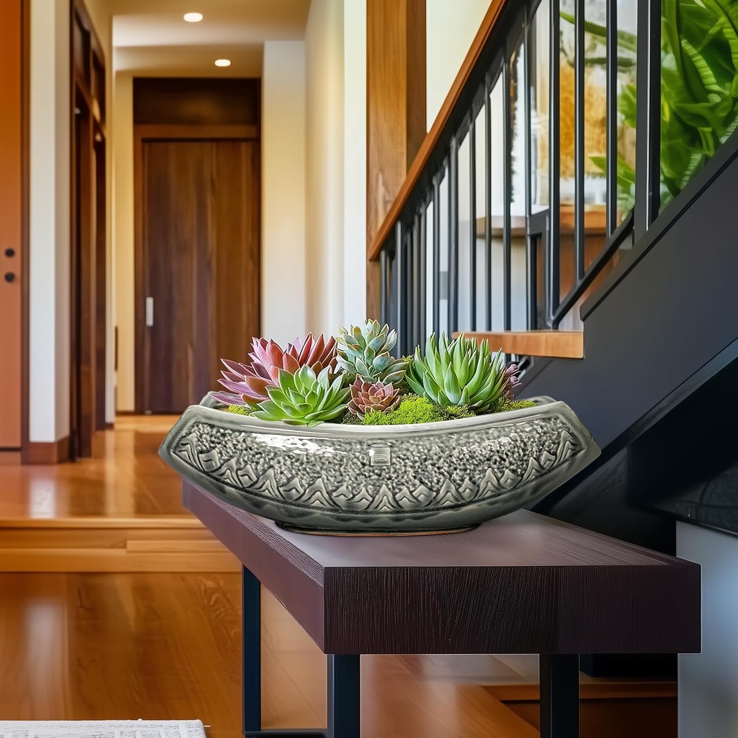 - Elegant Aesthetic: Featuring a beautiful grey ice crackle glaze finish and 3D relief pattern, this bonsai pots combines practicality with style, suitable for table, desk, windowsill, shelves, living room, bedroom, bathroom, porch, study, office, patio, balcony, zen garden, any indoor or outdoor space