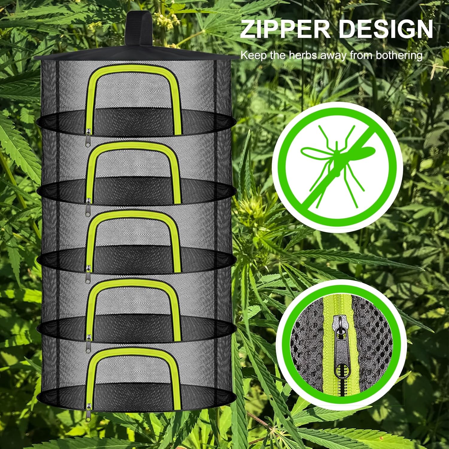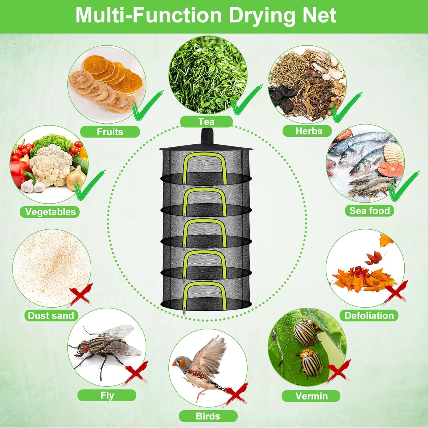 5 Layer Herb Drying Rack, Herb Drying Rack Hanging Mesh, Foldable Bud Drying Net with U-Shaped Zipper, Hooks, for Drying Herbs Plants, Flowers, Fruits, Food, Camping (5 Layers-23.62'')