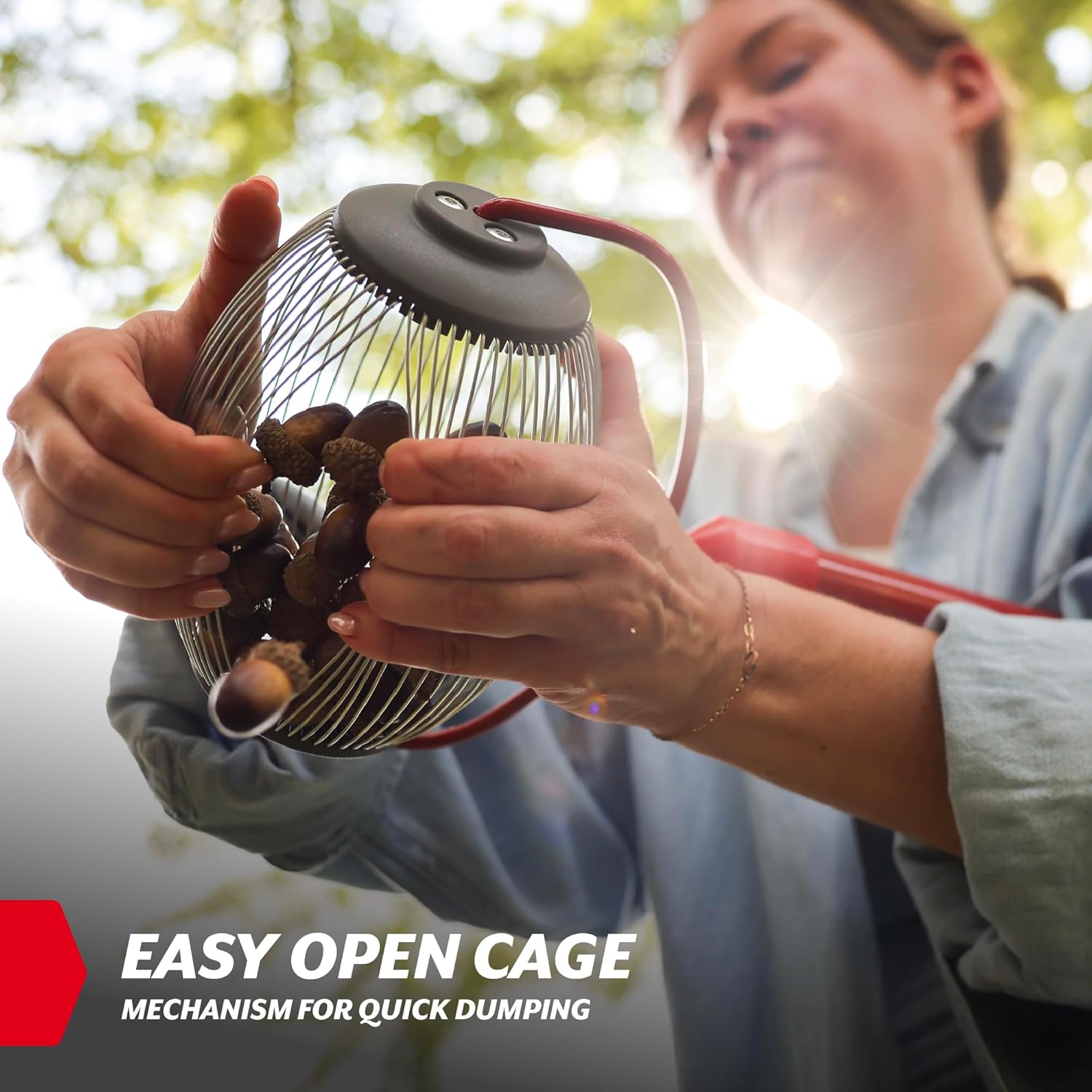 - STRONG AND COMFORTABLE Built with a rust-resistant, carbon steel frame and ergonomic rubber handle, this acorn picker upper roller is ready for rugged all-day cleanup without hand strainle.