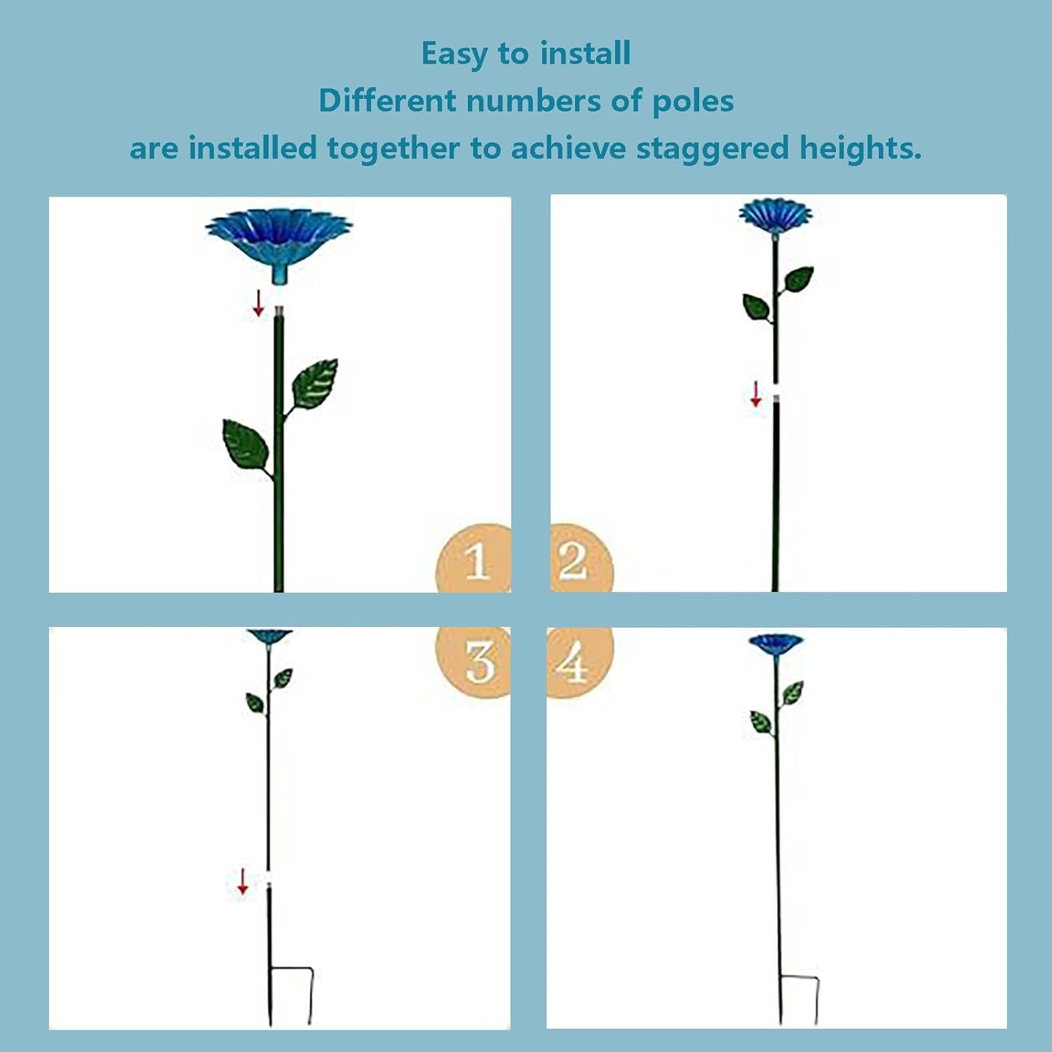 - Effortless, Tool-Free Installation: Simply screw the flower onto the stake and push the sturdy base into soil - no tools needed! Easily adjust the stake height for varied, charming garden displays. Creates instant stability.