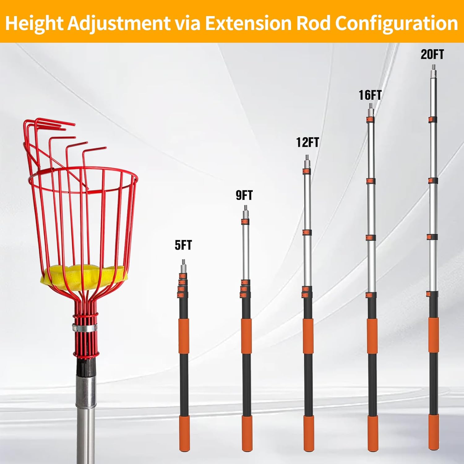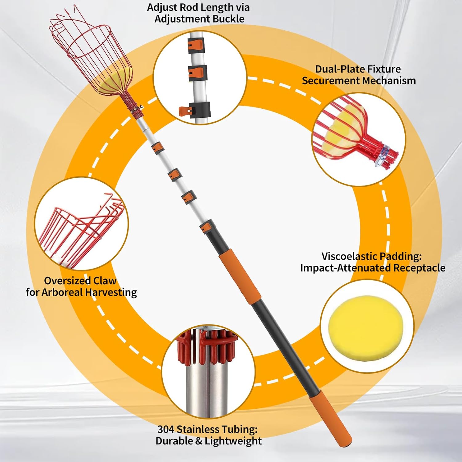 - 【Extend Your Reach Effortlessly】The Fruit Picker features a 26FT telescopic picking pole that easily accesses high branches without ladders. Safely harvest fruits like avocados, lemons, and Apple from tall trees with minimal effort.