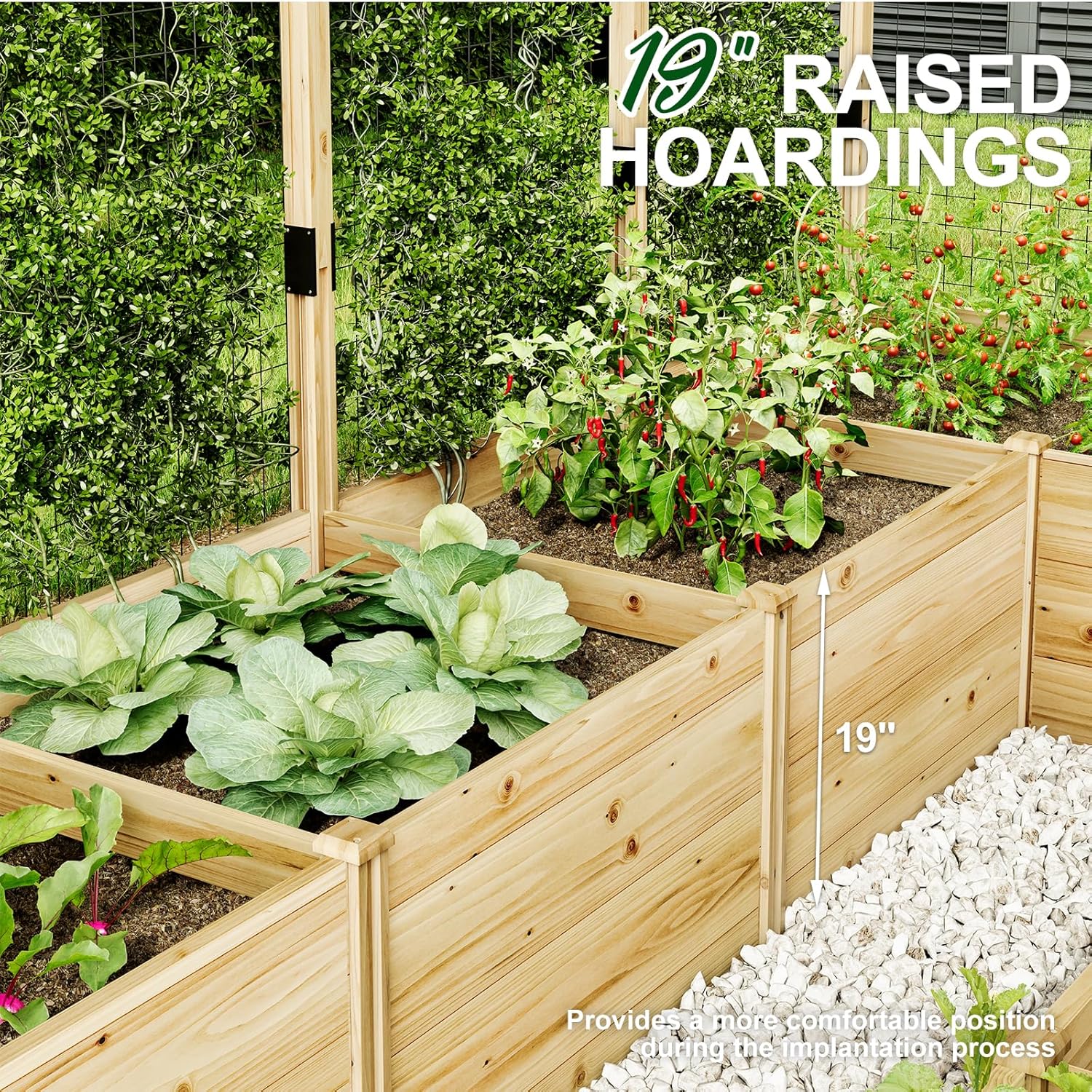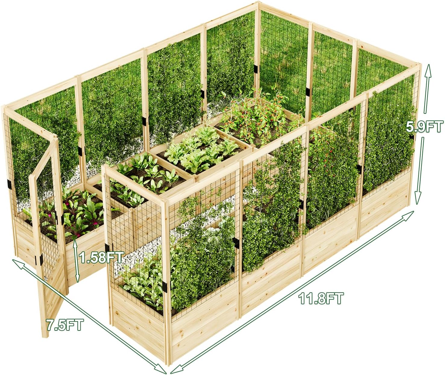 AMERLIFE Raised Garden Bed with Deer Proof Fence, 7.5Wx12Dx6H Outdoor Wooden Raised Garden Bed Planter with 19" Depth Planter Box