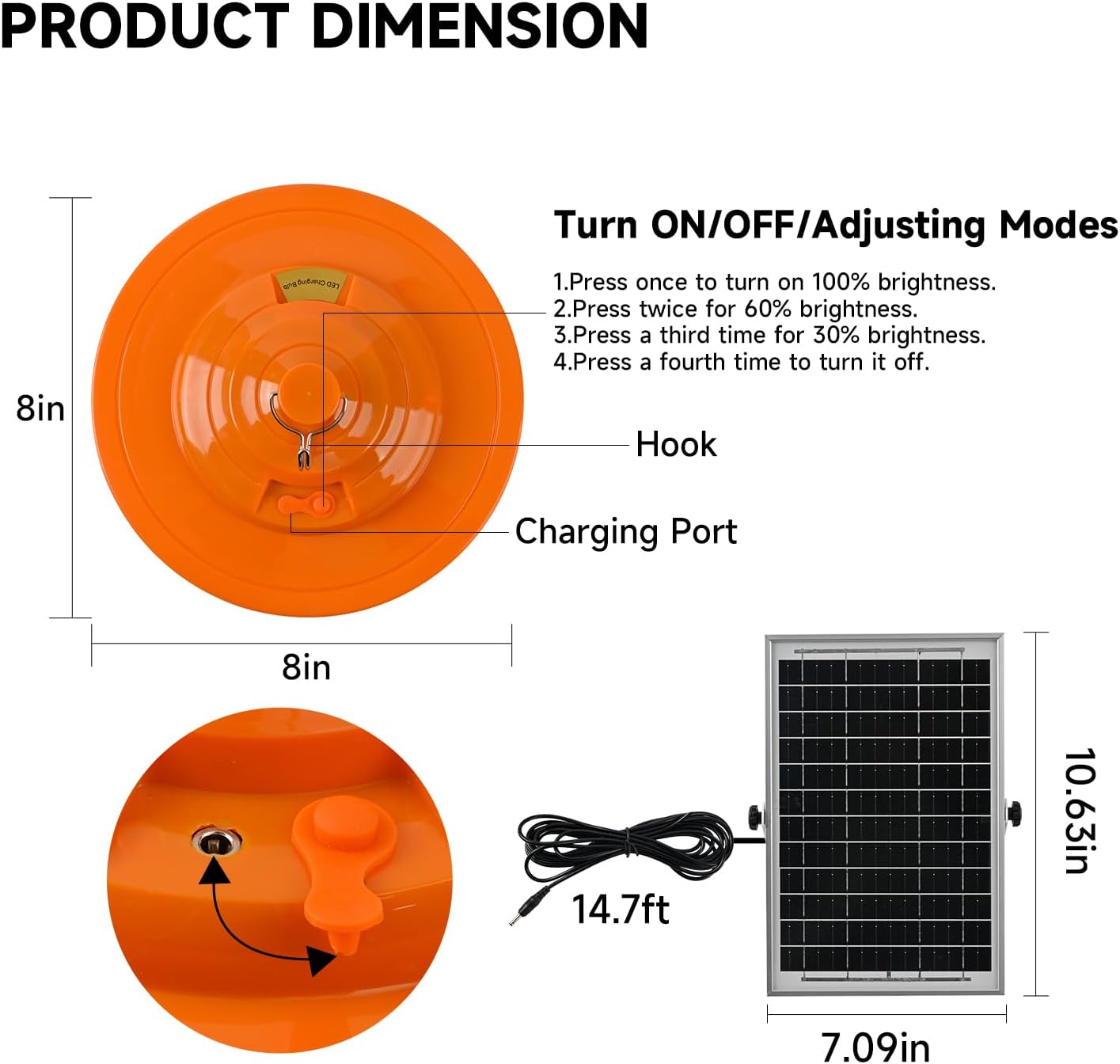 - 【Long-life Span】Our solar pendant grow lights comes with waterproof monocrystalline silicon 10.6in x 7in solar metal panels and large capacity batteries with high photovoltaic conversion efficiency. This battery powered plant grow light can effectively utilize sunlight, shorten the charging time and extend the lighting duration. Note: Charging efficiency depends on sunlight conditions.