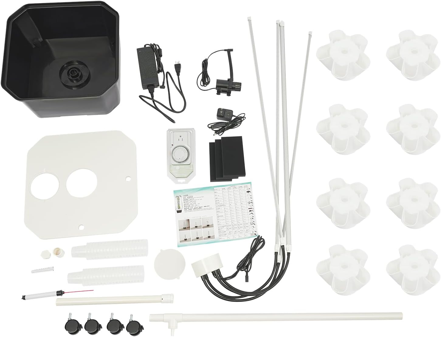 - 【User Friendly】: After installing the hydroponic growing kit, please connect the water source and power supply, and the hydroponic tower will automatically start running. Besides, the water pump is set to run for 1 minute and then shut off for 5 minutes, repeating this cycle continuously.