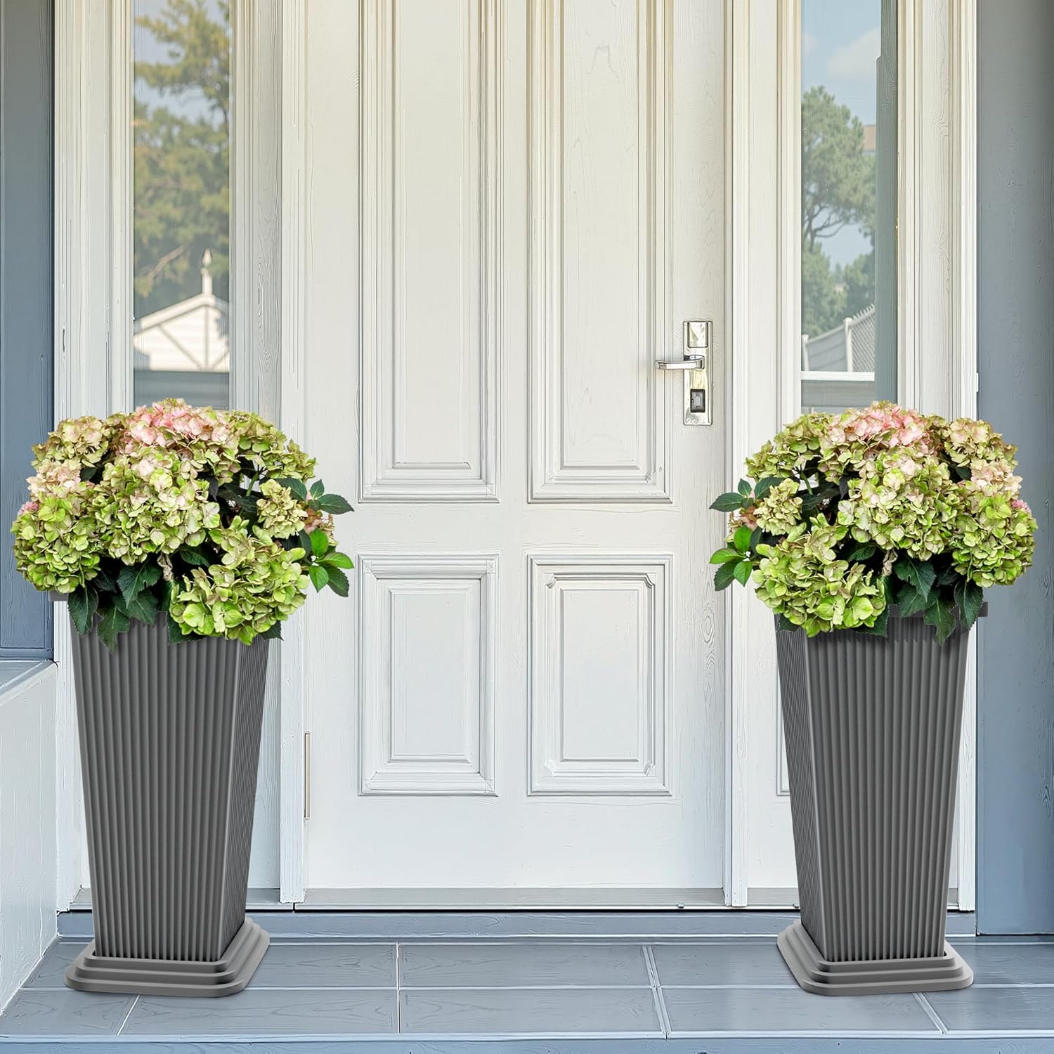 - Built to Endure All Weather Conditions: Crafted from premium, weather-resistant plastic, these tall planters for outdoor plants are designed to resist cracking, fading, and damage from the sun, rain, and snow. Perfect for any season, these large planters for outdoor plants ensure long-lasting durability, making them an excellent choice for outdoor and indoor gardening alike.