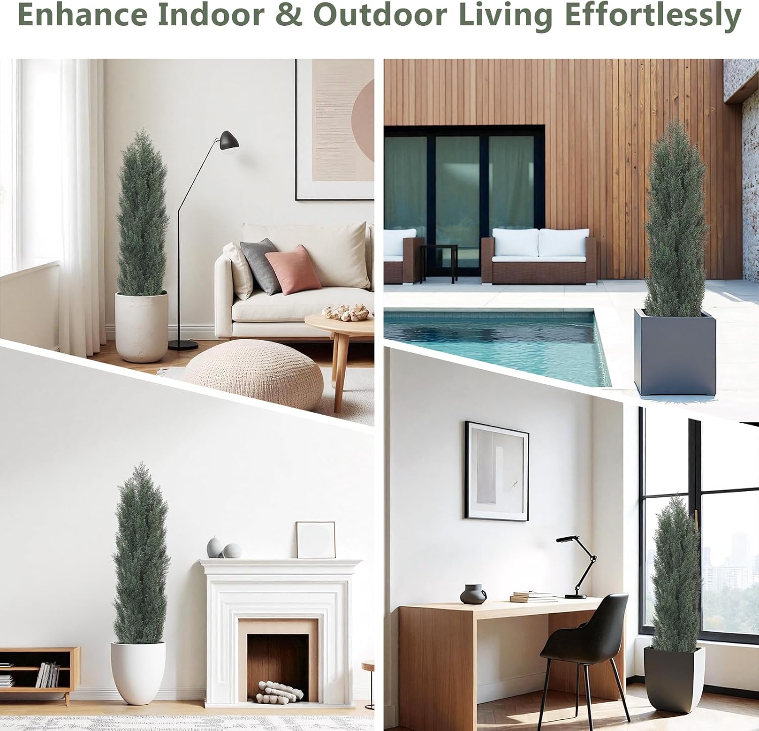- 【Tall & Realistic Look – 5ft Natural Greenery】Standing 5 feet tall from the bottom of the pot to the tip of the tallest leaf, this artificial cedar tree features dense, lifelike greenery that mimics a real evergreen shape. Please note: The tree is shipped compressed. To reach its full height and natural look, gently fluff the branches upward by hand after assembly