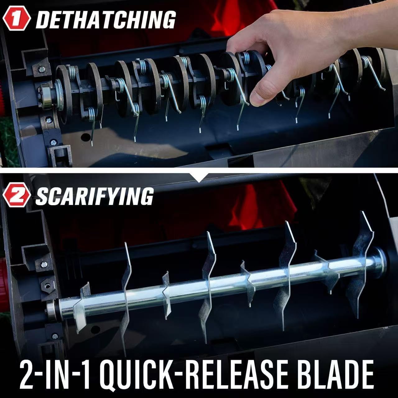 - [Quick-Switch 2-in-1 Blades]:Use the dethatcher to clear thatch and moss or switch to scarifying to encourage deeper root growth and better soil health. This versatile tool offers flexibility for different lawn care needs.