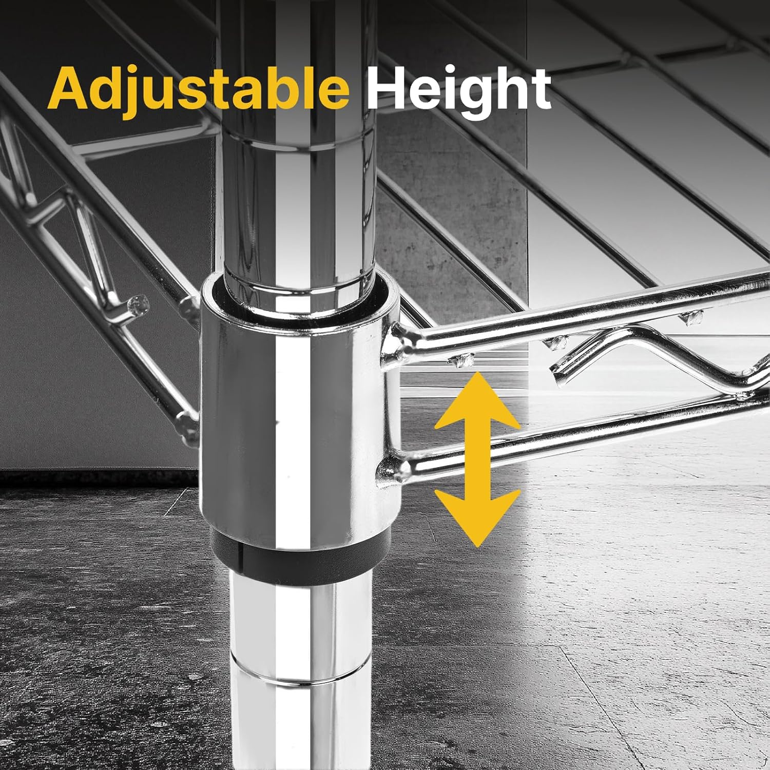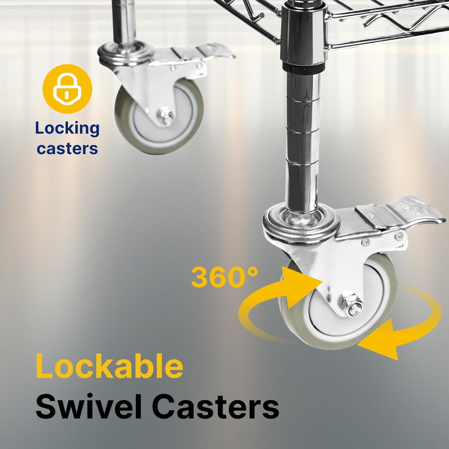 - Heavy-Duty & Spacious Utility Cart Durable chrome-finish wire frame resists corrosion and adds sleek, professional styling. With 24” × 18” shelves and 44.1” height, this rolling utility cart on wheels is ideal for use as a kitchen cart, bar cart, or office rolling cart, offering generous space for everyday storage.