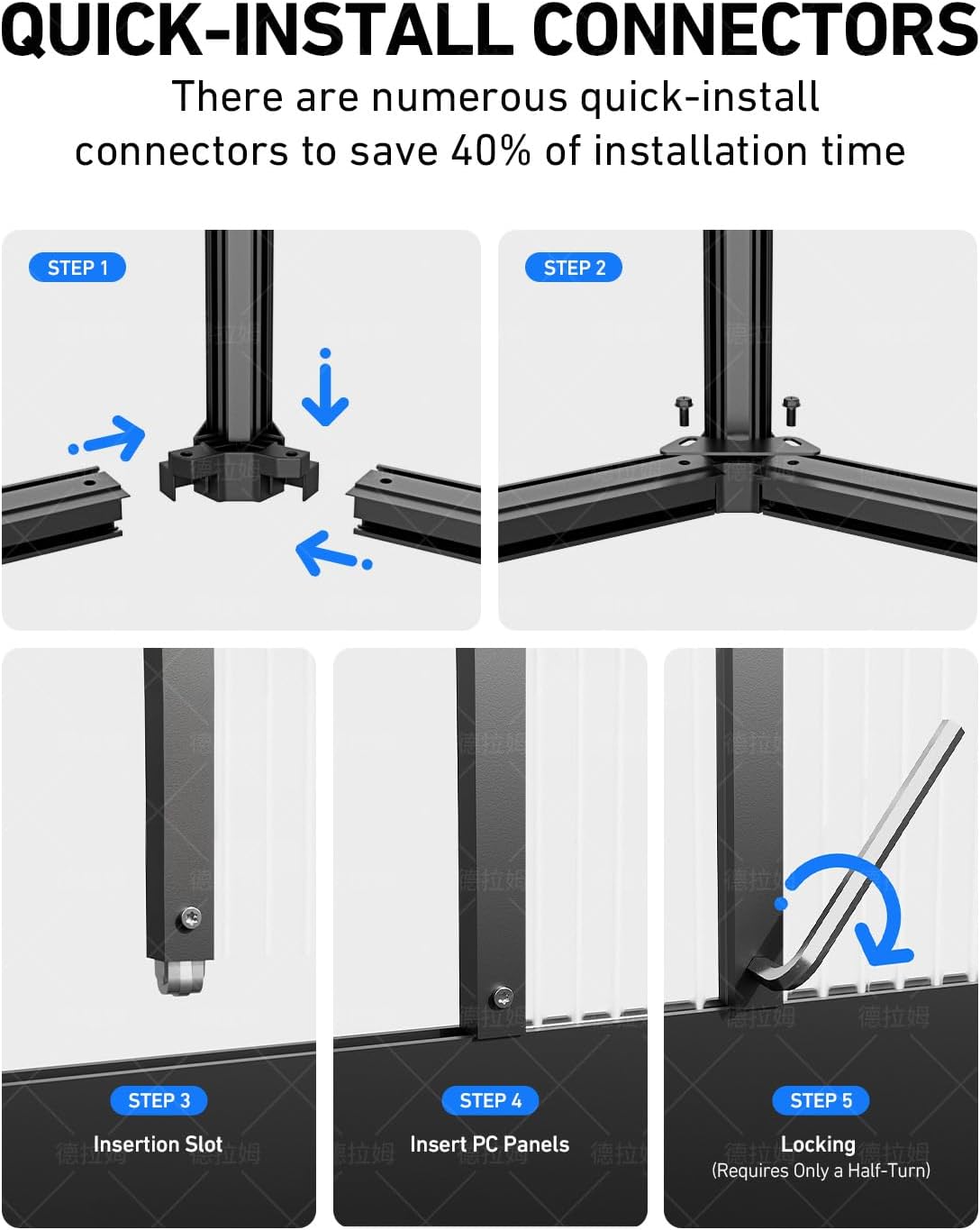 - QUALITY UV RESISTANT PANELS – The 720g PC panels of this green houses for outside that are 4mm thick and twin-wall polycarbonate roof panels are designed for strength and clarity. These shatterproof panels let in just the right amount of light while controlling humidity and temperature in your greenhouse. They effectively block harmful UV rays, creating the great environment for your plants to thrive and preventing sunburn