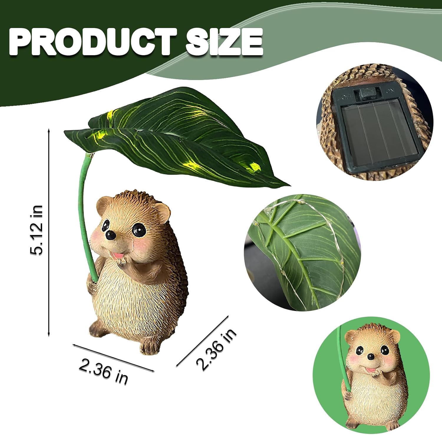 - 【Weatherproof for Outdoor Use】Made of premium resin material,our solar hedgehog statue is sturdy and heavy with an IP65 waterproof rating,and can stand well in rainy or windy days.The colorful painting is coated with exquisite craftsmanship and not east to fade when exposed to various weather conditions,making the figurine a wonderful outdoor decorative ornament.
