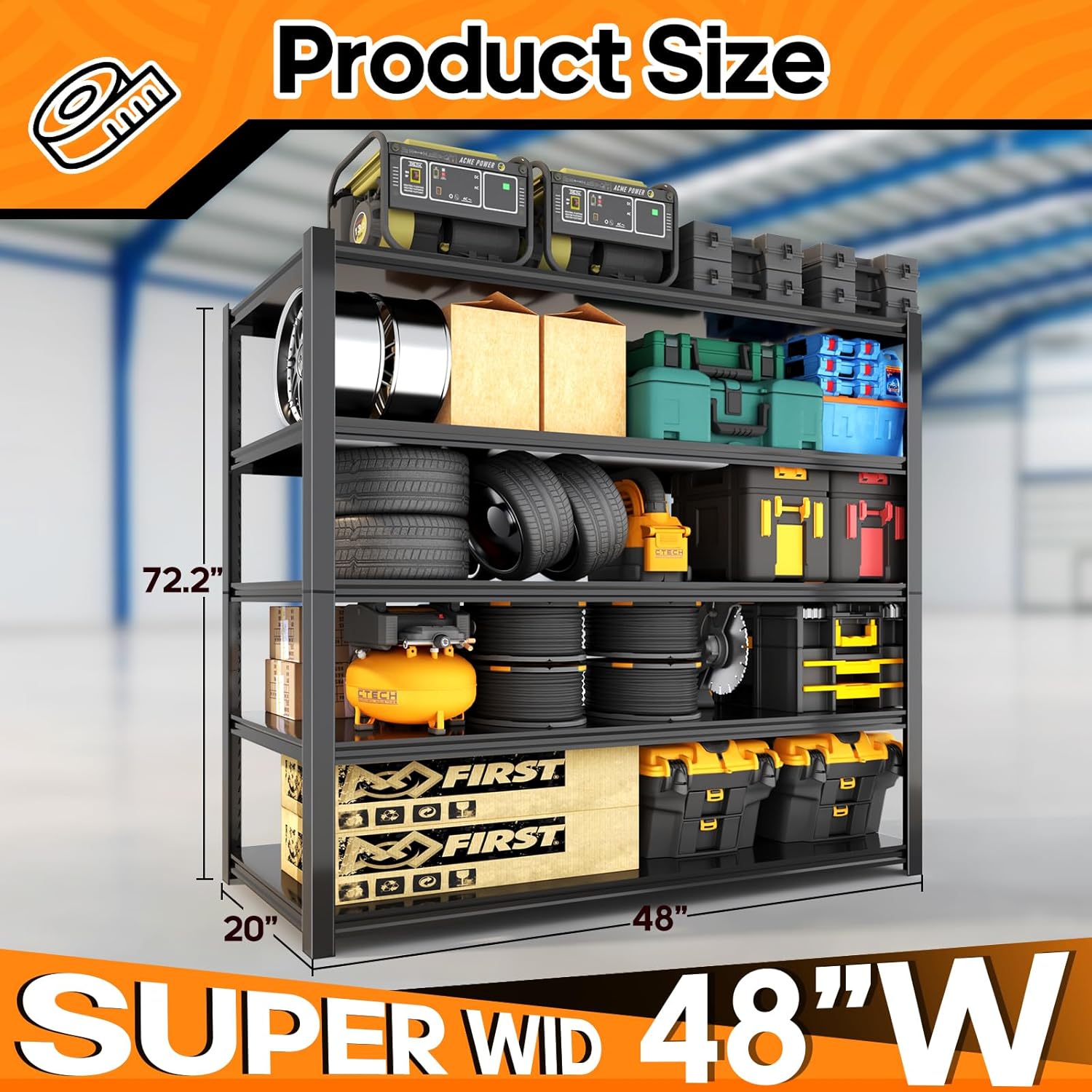 Garage Shelving Heavy Duty,5 Tier Adjustable Metal Shelving Storage Rack,Storage Shelves,48" Wx20 Dx72.2 H,Industrial Shelving Unit for Basement,Warehouse,Garage Organization.1 Pack