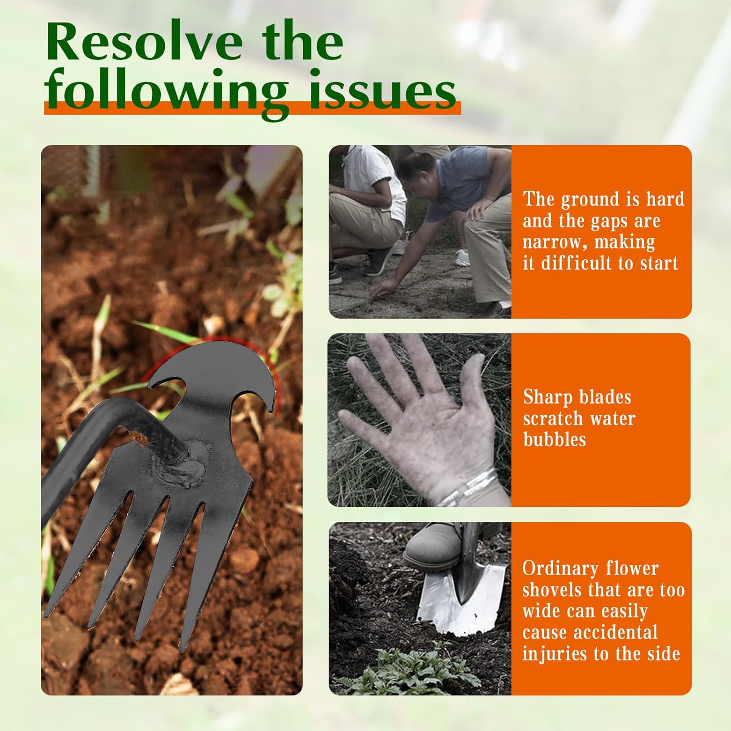 - 【Multifunctional Garden Tool】This tool is designed to handle weeding and digging tasks in gardens, yards, or farms. It's the ultimate companion for gardening and farming.It's incredibly easy to use. Simply insert the four sharp teeth into the soil when pulling out grass. Make sure the root of the grass is as close to the bottom of the groove as possible to facilitate the removal of weeds in corners and narrow spaces.