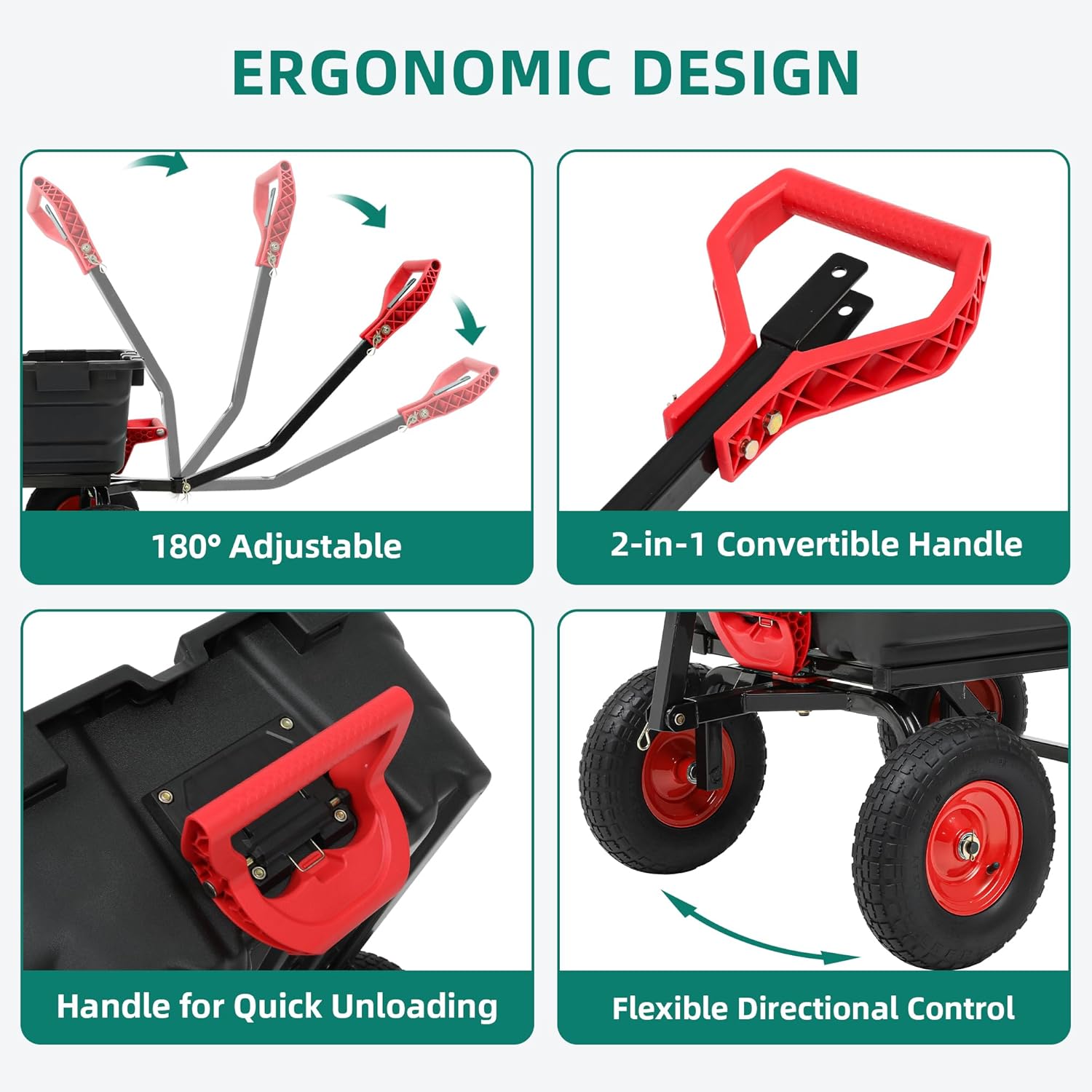 - [Effortless Unloading Design]:Experience rapid unloading with the quick release system on this garden dump cart; simply disassemble the bottom frame or utilize the 180° adjustable handle for fast, easy dumping, dramatically doubling your work efficiency.