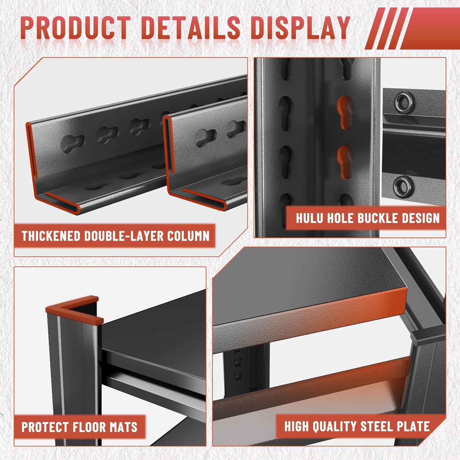 - 【Perfect for Various Storage Needs】Whether you're organizing tools, equipment, or household items, this versatile Garage Shelving is ideal for a wide range of applications. Its high weight capacity and durable construction make it the perfect addition to any garage, workshop, or storage area