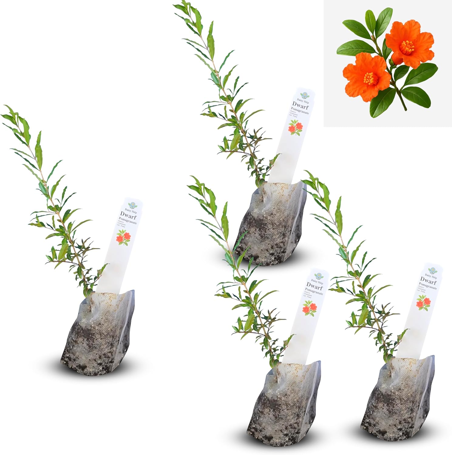 Live Dwarf Pomegranate Plant (Punica Granatum) - Compact, Ornamental Fruit Bearing Shrub, Indoor/Outdoor (4 pom-Dwarf sacs)