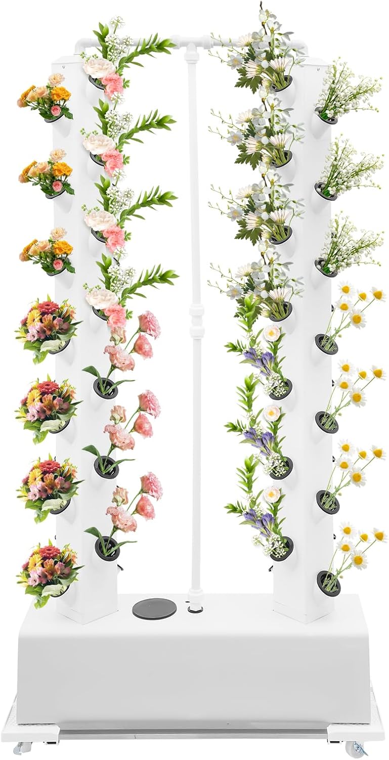 Hydroponic Growing System Indoor Outdoor, 56-Plant Vertical Garden Planter Germination Kit, Hydroponics Growing Tower, Smart Garden Vegetable Plant Kit with Pump & Wheels, White Base
