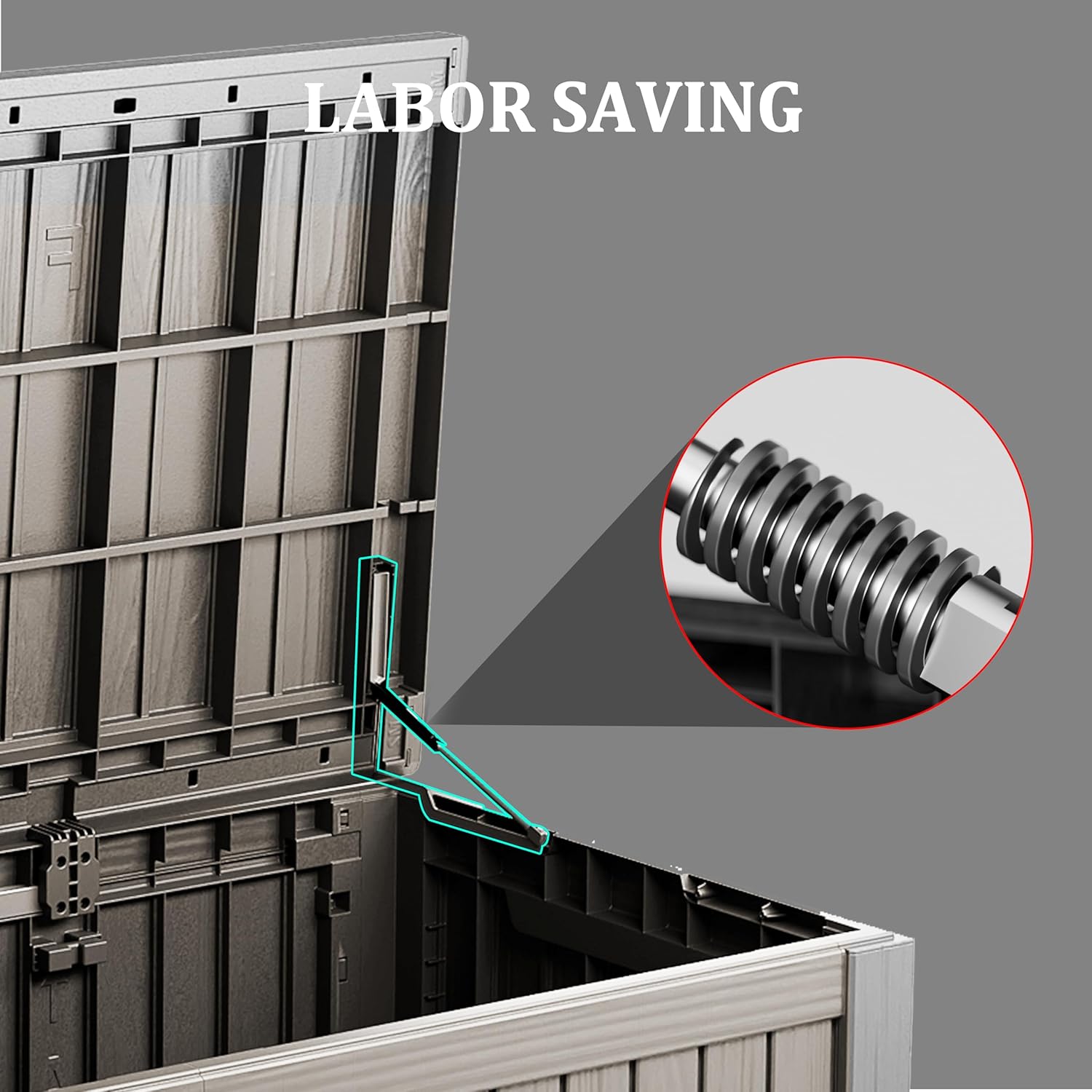 - Resin Material: The deck storage box made of resin material has excellent ultraviolet protection and waterproof ability, is suitable for all-weather outdoor environment, and has a service life of many years