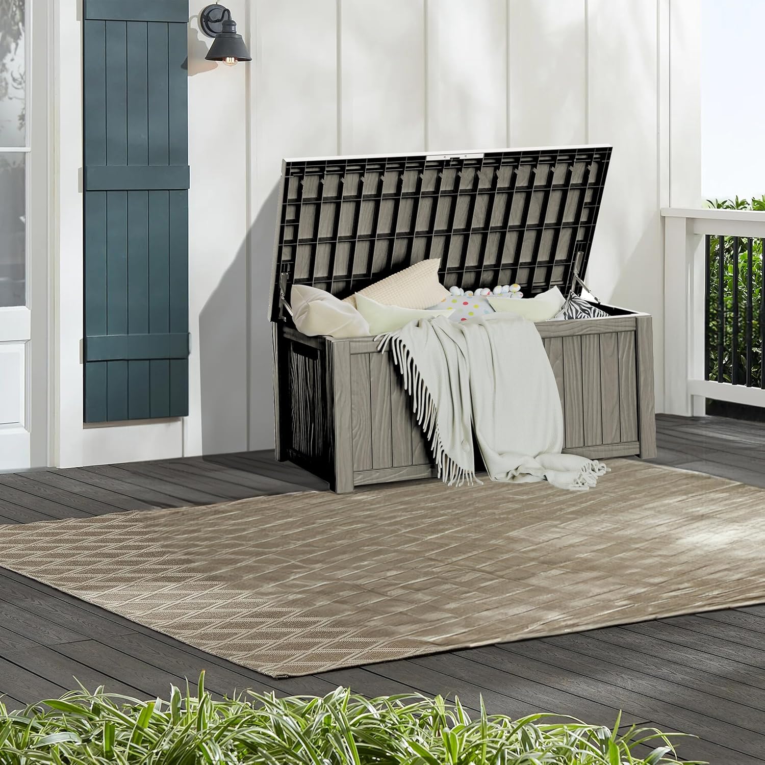 150 Gallon Outdoor Storage Box Waterproof Large Resin Deck Box Indoor/Outdoor Lockable Storage Container and Seating for Garden, Pool, and Patio (150 Gallon, Grey)